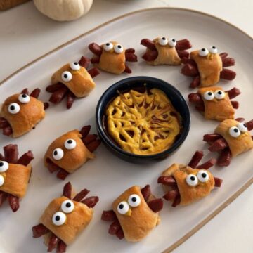 These spooky-cute “spider” pigs in a blanket are the easiest Halloween appetizer ever! Perfect for parties, movie nights, or just a fun snack to make with kids.