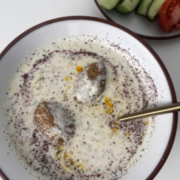 Spas (Սպաս) is a traditional Armenian soup with a yogurt base. While it’s traditionally prepared with hulled wheat berries (ձավար), my family has always made it with rice. Some people use other grains like barley or bulgur, depending on family tradition. In some homes, Spas is made with chicken and served alongside Ishli Koofteh stuffed with butter. This is the version I grew up eating—made with rice and Ishli Koofteh stuffed with ground beef.