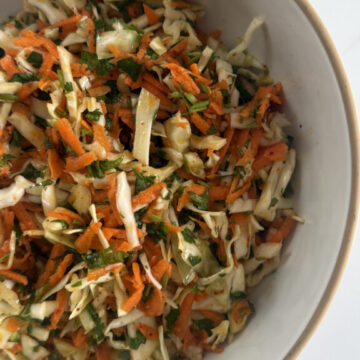 This bright, crunchy cabbage salad is one of those recipes I grew up eating and still crave to this day. It’s simple, fresh, and packed with lemony flavor from just a handful of ingredients. We usually serve it alongside fish, but it pairs beautifully with grilled meats, rice dishes, or enjoyed on its own.